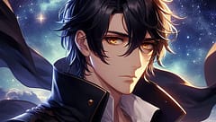 幻像のように広間の上部の空間に炎の壁が浮かび、そこに黒いコートの男が映った。