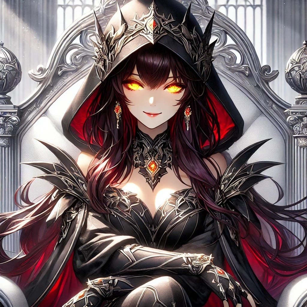 苦笑しつつ顔を上げたのは、暗い赤髪と、この薄暗がりでも猫のように光る虎目石のような目をした女だった。黒と赤、そしてわずかの銀を用いた衣装は、ドレスのようにも洗練された狩人の衣装にも見える。実際に、スカートとタイツからわずかに肌がのぞく両の腿には大小二丁の銃と、椅子には月色に輝く弓と矢筒が掛けられていた。