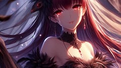 ルインから見たティアーリア。長いまつ毛の下の赤い目は好奇心と熾火のような赤い情念が燃えているようで、これは大抵の人間には直視できないほどの力がある。多くの場合、おのれの恐怖や欲望、虚栄に囚われて心の安定を欠くのだ。しかし、ルインはそうはならない。