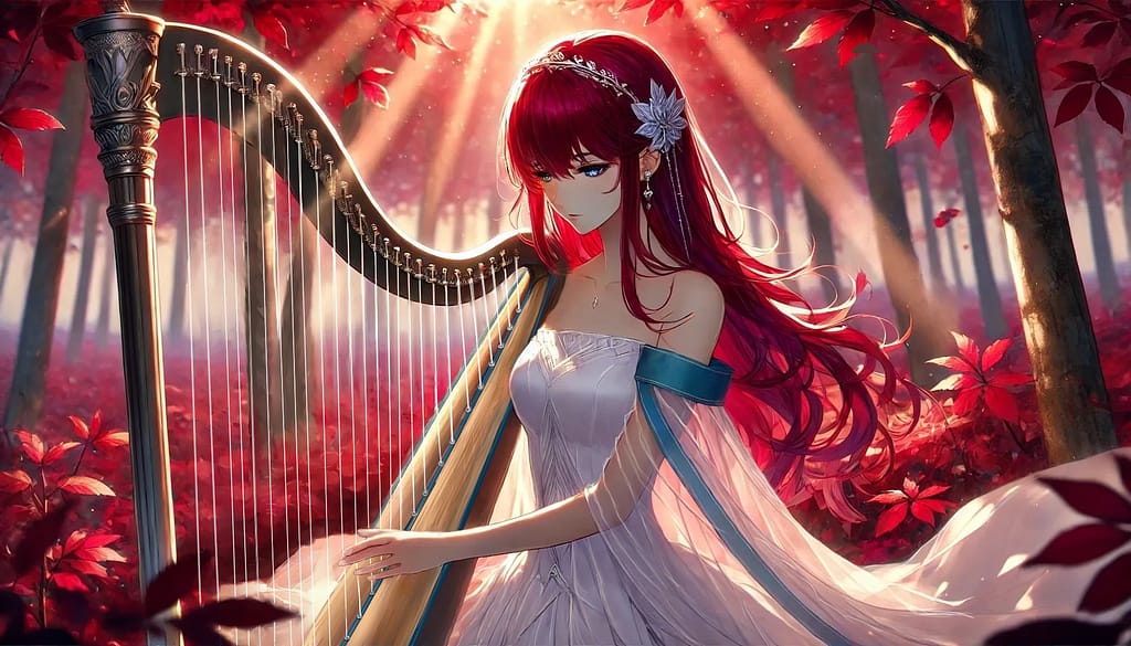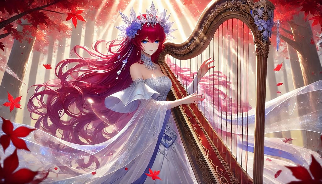 ラーウヒルドはしなやかな手でヴェフティマを撫でるように弦を鳴らし、あたりは血の滴るように赤い、しかし輝くように美しく紅葉した秋の森となった。